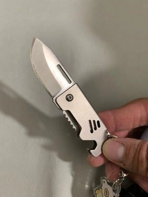 Carry a compact folding knife on your keyring so you can open packages, cut rope, prep kindling, or fix gear in seconds. Durable steel blade stays sharp for camping, hiking, and emergencies, giving practical reliability.